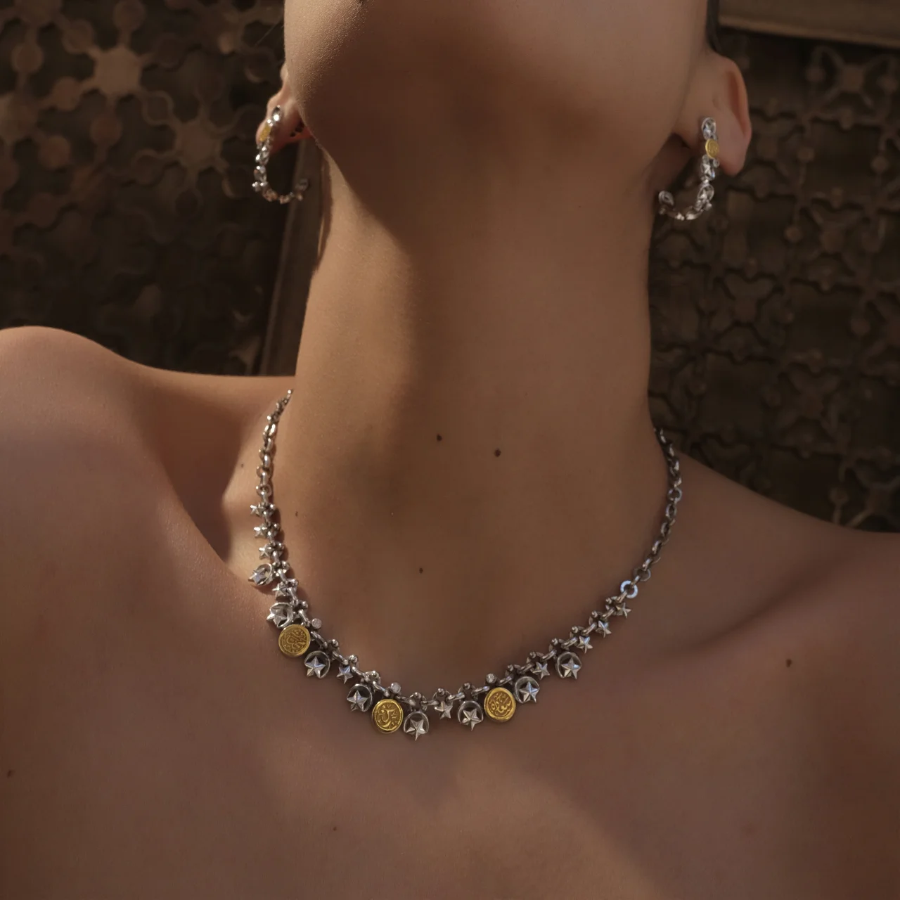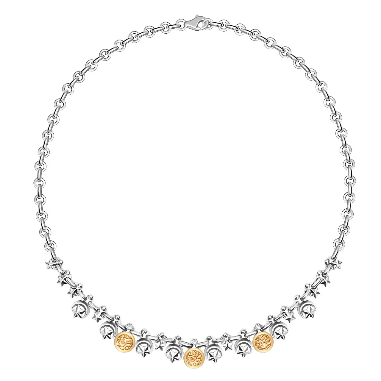 18k gold and pure silver with platinum plate finish, semi-precious stones, custom Arabic calligraphy. Egyptian heritage-inspired, handcrafted. Personalize your daily life, wear a piece of heritage that speaks to your heart.