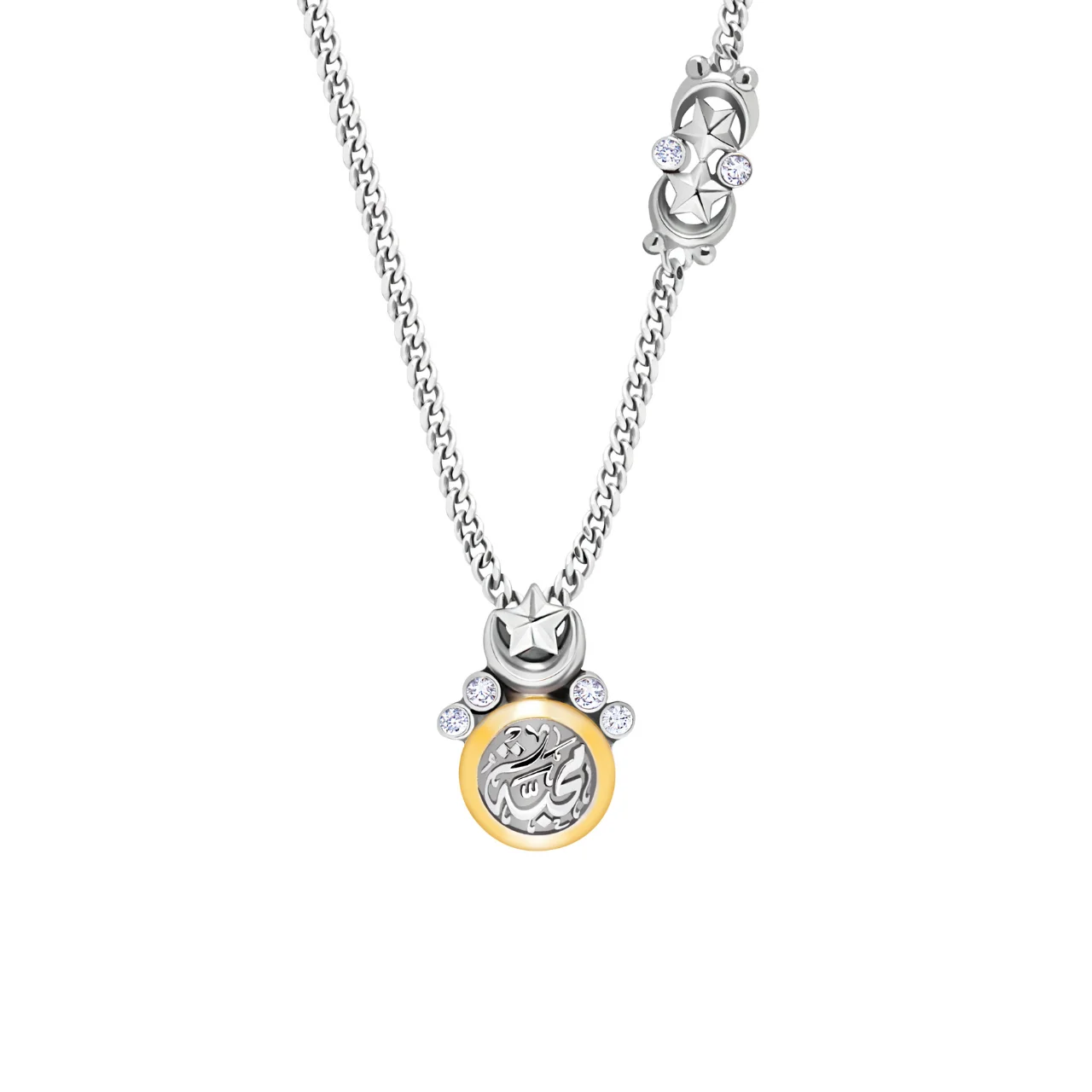 18k gold and pure silver with platinum plate finish, semi-precious stones, custom Arabic calligraphy. Egyptian heritage-inspired, handcrafted. Personalize your daily life, wear a piece of heritage that speaks to your heart.