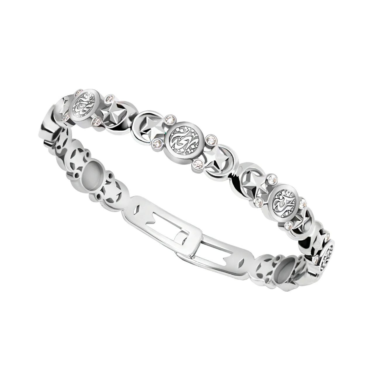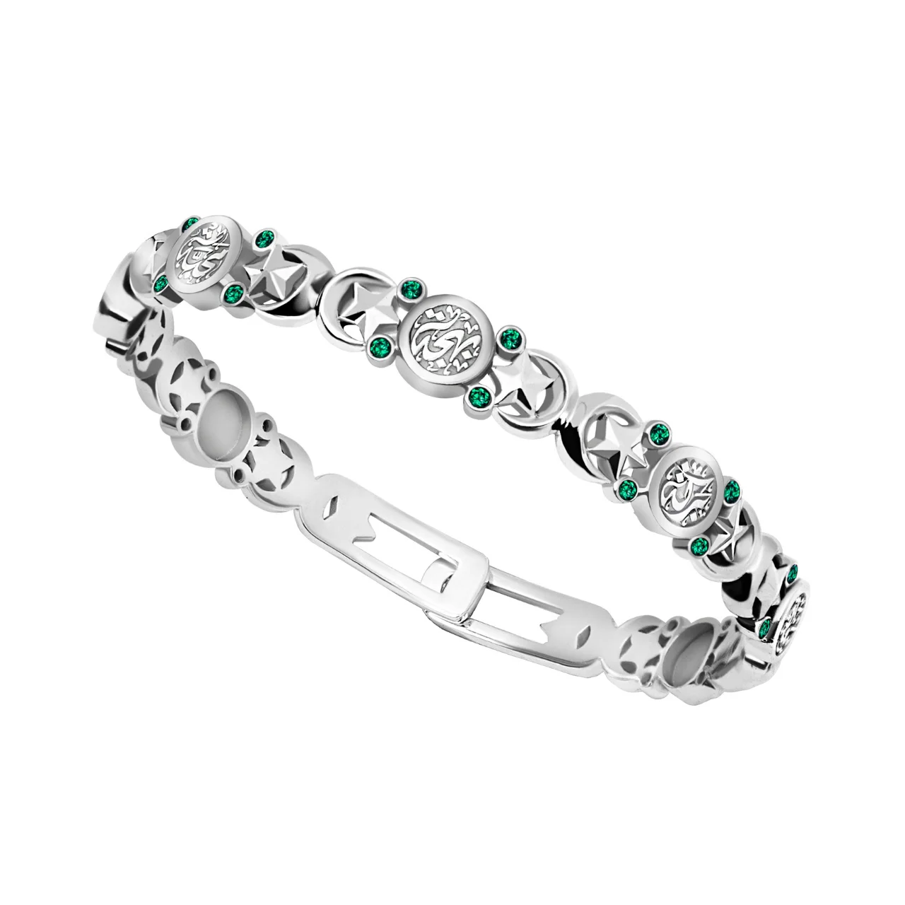 A pure silver with platinum plate finish and semi-precious stones, custom Arabic calligraphy. Egyptian heritage-inspired, handcrafted. Personalize your daily life, wear a piece of heritage that speaks to your heart.