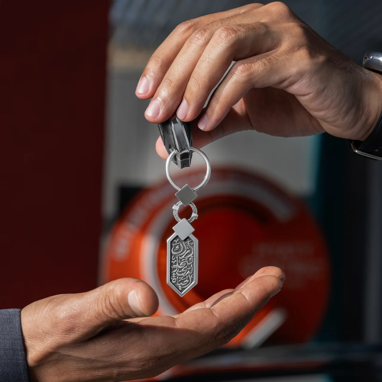 Material: Pure Silver with oxide Our pure Silver keychain from the Dhat collection is the perfect way to express your individuality without compromising your style.