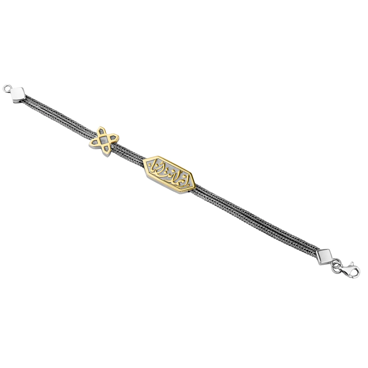 Material: 18k Yellow Gold and pure Silver with a Platinum plate Embellish your wrist with the elegance of Egyptian heritage and the artistry of Arabic calligraphy. This piece embodies the essence of history and craftsmanship in every intricate detail. Wear a story of beauty and culture. Express your essence with our mixed bracelet.