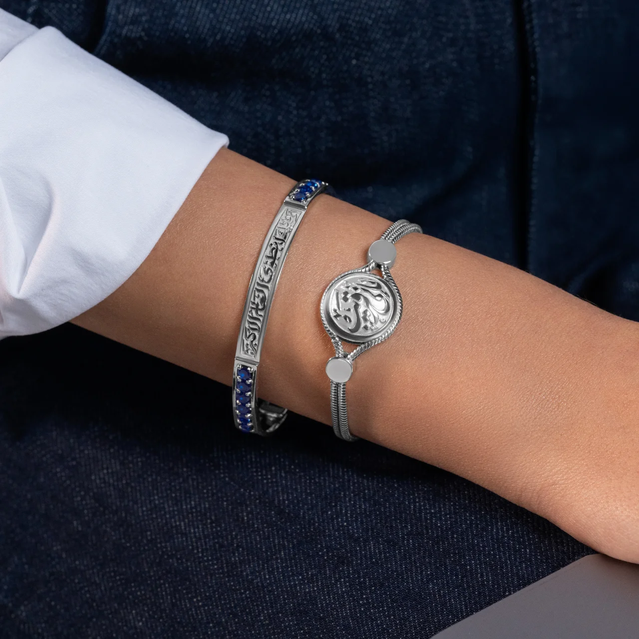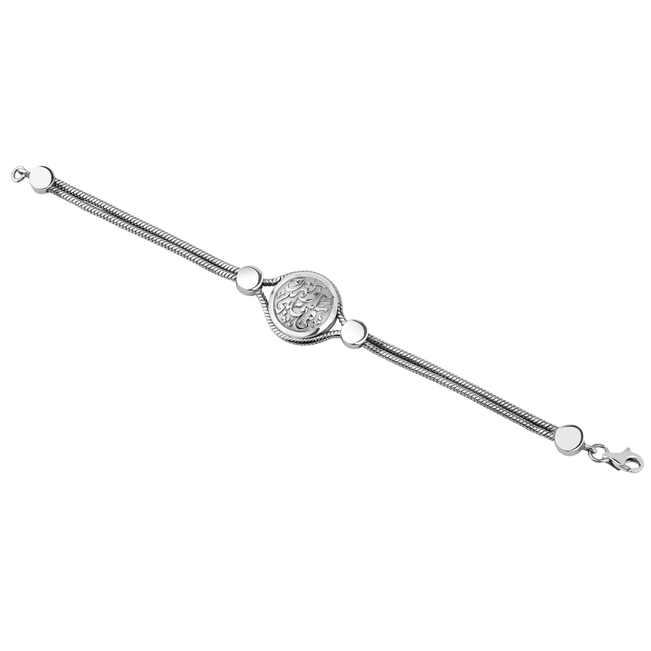 Material: Pure Silver with Platinum Plate Discover everyday elegance with our Zeena Collection Silver Round Bracelet. This timeless piece, inspired by Arabic culture, adds a touch of sophistication to any occasion. With its sleek and versatile design, it’s the perfect accessory for your daily style.